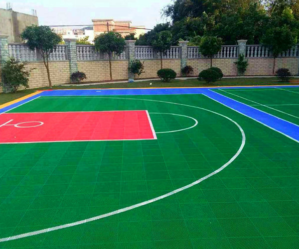 籃球場使用懸浮拼裝地板會有什么好處呢?室內籃球場一般選用的是木質地板或者pvc,如果是室外籃球場的話,選用木地板有點不切實際,木地板經不起室外的風吹雨淋;而pvc上面僅有薄薄的一層薄膜,經不起一切的利器剮蹭,時間久了,pvc上面的那層膜層也就沖突掉了,會變的十分丑陋。